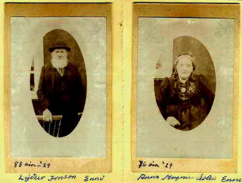 Ættforeldrarnir[ Upphafssíða ] [ Skráning ]Um Lýð Jónsson og Önnu MagnúsdótturLýður Jónsson var fæddur 27. mars 1845. Hann var sonur hjónanna á Enni, þeirra Jóns Jónssonar, bónda á Enni, Andréssonar, og Hallfríðar Brynjólfsdóttur, á Kárastöðum á Vatnsnesi, Brynjólfssonar. Lýður lést 27. maí 1937, það var rúmum tveimur mánuðum eftir andlát eiginkonu hans. Anna Magnúsdóttir var
